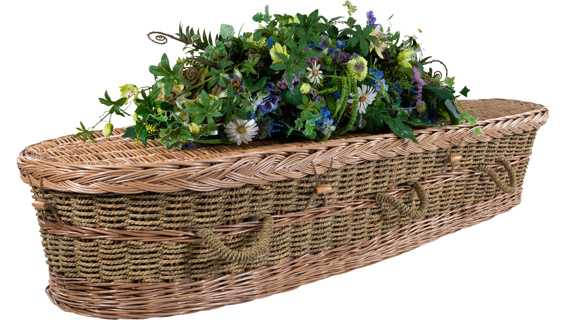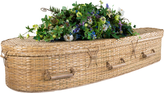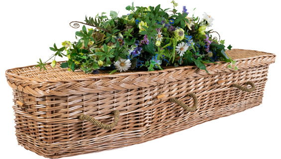 A classic rectangular traditional coffin hand-woven from natural willow, combining heritage design with sustainable materials.